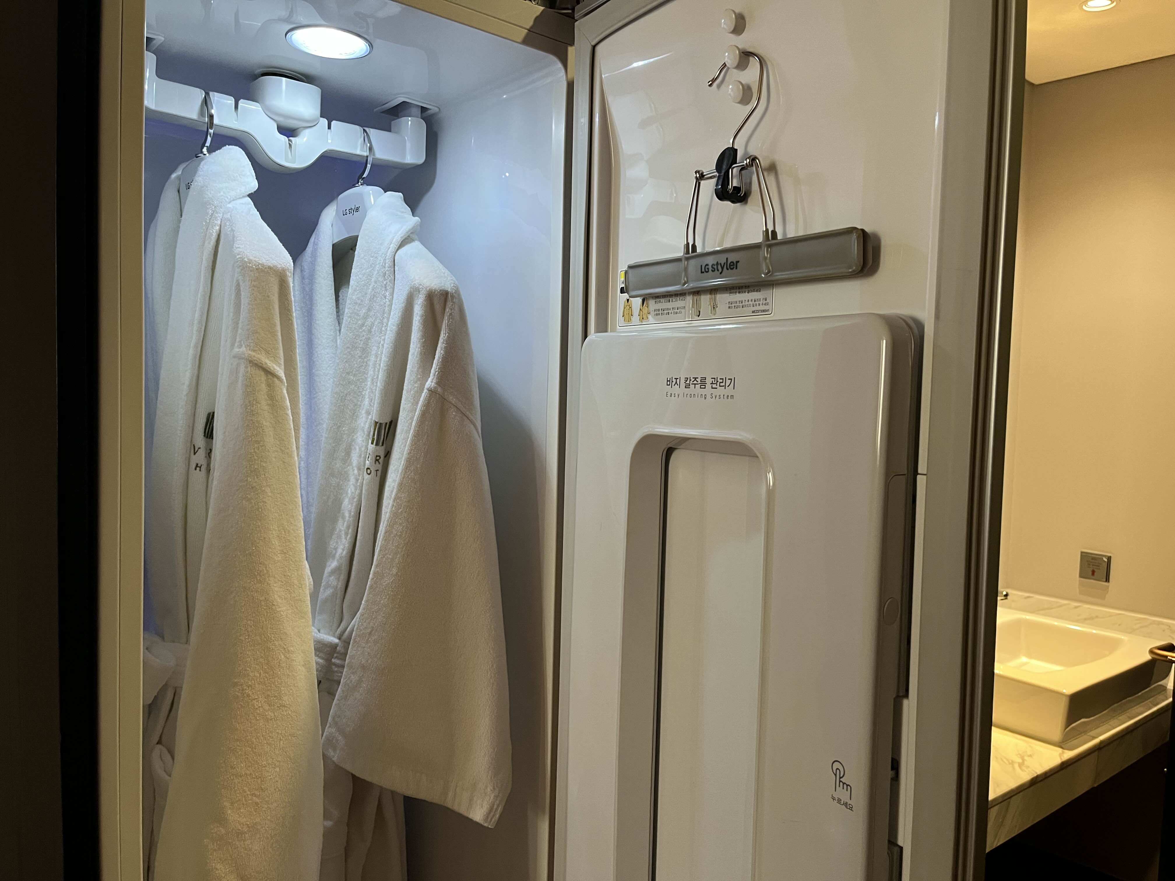 처음 사용해보는 의류 스타일러! 날씨가 더워서 땀을 많이 흘렸는데 스타일러에 넣었더니 완전 뽀송뽀송!! 건조기와 비슷할 줄 알았는데 뭔가 스팀기능이 있어서 그런지 드라이크리닝 끝나고 바로 입는 뽀송함이 있어서 좋았어요 ㅋㅋ 챙겨온 잠옷도 스타일러로 소독해서 집에가서 다시 입자고 했지만.. ㅋㅋㅋ 시간조절을 못했네요.