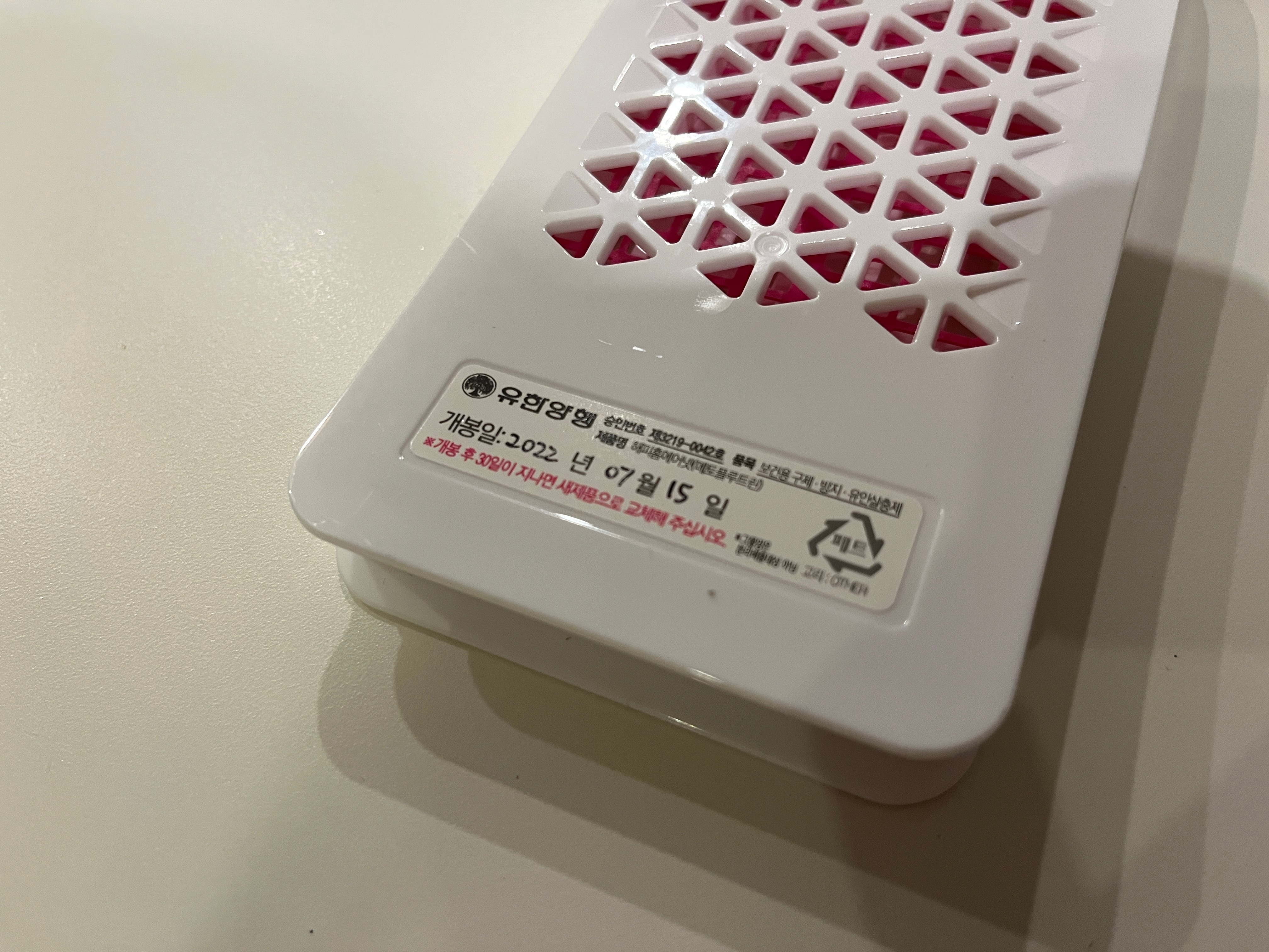총 3개가 들어있고, 1개당 30일씩 사용해서 금액으로 따지면 저렴한 가격은 아니지만,, 그래도 전기를 사용하지 않고 계속 이동하면서 사용할 수 있다는 장점이 있어요. 총 90일을 사용할 수 있으니 따로 사용하면 9월까지는 넉넉하게 사용할 수 있을 것 같아요! 걸이형은 위에 고리가 있어서 안방과 연결되어있는 베란다에 걸거나 방문 입구에 두면 좋을 것 같아요 ^^